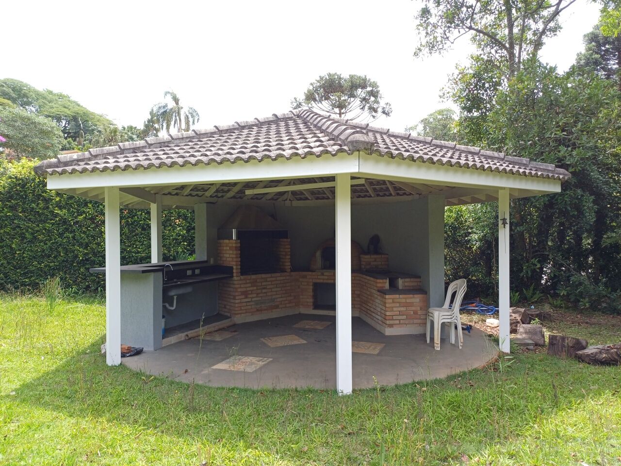 Condomínio Vila de São Fernando, casa com 498 m2 em terreno de 1.360 m2, 3 suítes com armários (ar condicionado), salas integradas, lavabo, sótão com 2 dormitórios e banheiro, cozinha com armários, salão de festas, edícula com salas, banheiro e dormitório, vaga para aproximadamente 10 carros (5 cobertos), jardim com vegetação variada e árvores, área de churrasqueira coberta com fogão a lenha, piscina.